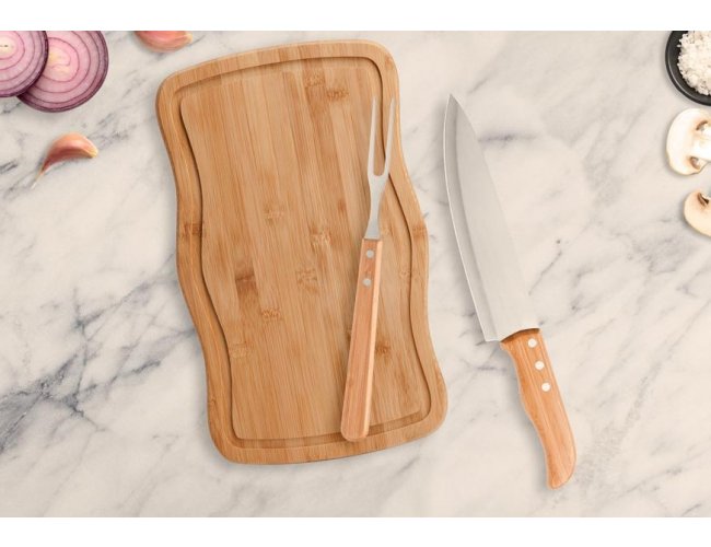 MB-32093 - Kit Churrasco com Tábua, Garfo e Faca 8" em Bambu/Inox - 3 peças