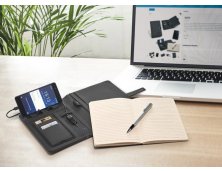 Pasta A5 em couro sintético com bateria portátil embutida (lítio).